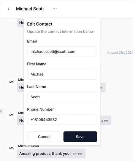 Contact edited: Triggered when contact information is edited in Hatch