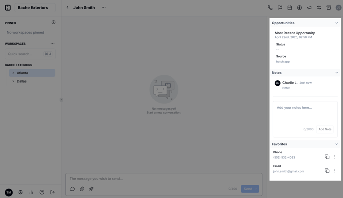 - Notes: Users can add a note to a contact to provide context / guidance for other users within a workspace.
