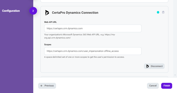 - The integration uses OAuth protocol to allow access to the Dynamics APIs, so all you need to do it click connect and then authorize on the CertaPro screen that will pop-up. Once authorized, return to the Hatch integration screen and the connection bubble should be blue.