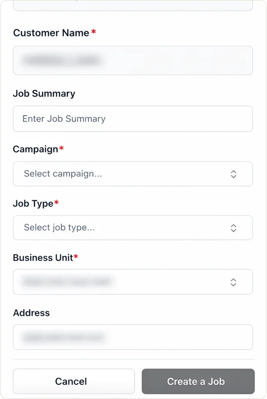 You can create ServiceTitan jobs directly in Hatch, eliminating tab-switching, manual re-entry, and lost context. If the ServiceTitan integration is enabled, the “Create a Job” button will appear on the right when selecting a contact, within the “Quick Actions” section. When creating a job, you will need to select a customer and location, and provide the required information.