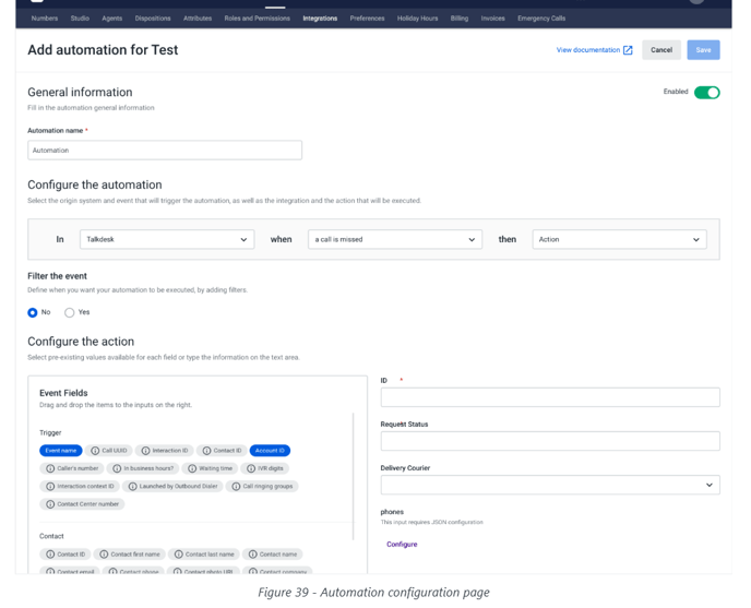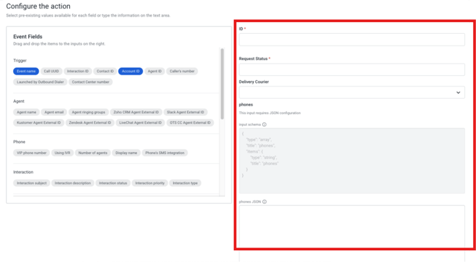 - Configure Output— here is where we define the data that will be sent in or out of Talkdesk